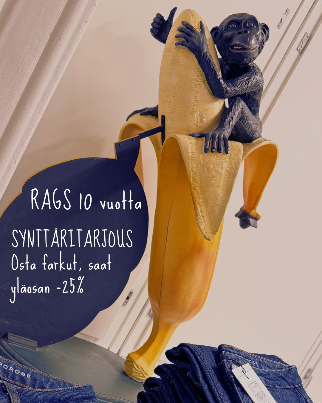 Synttäritarjouksena huhtikuun ajan farkkujen ostajalle yläosa -25 % (pl. Americandreams)