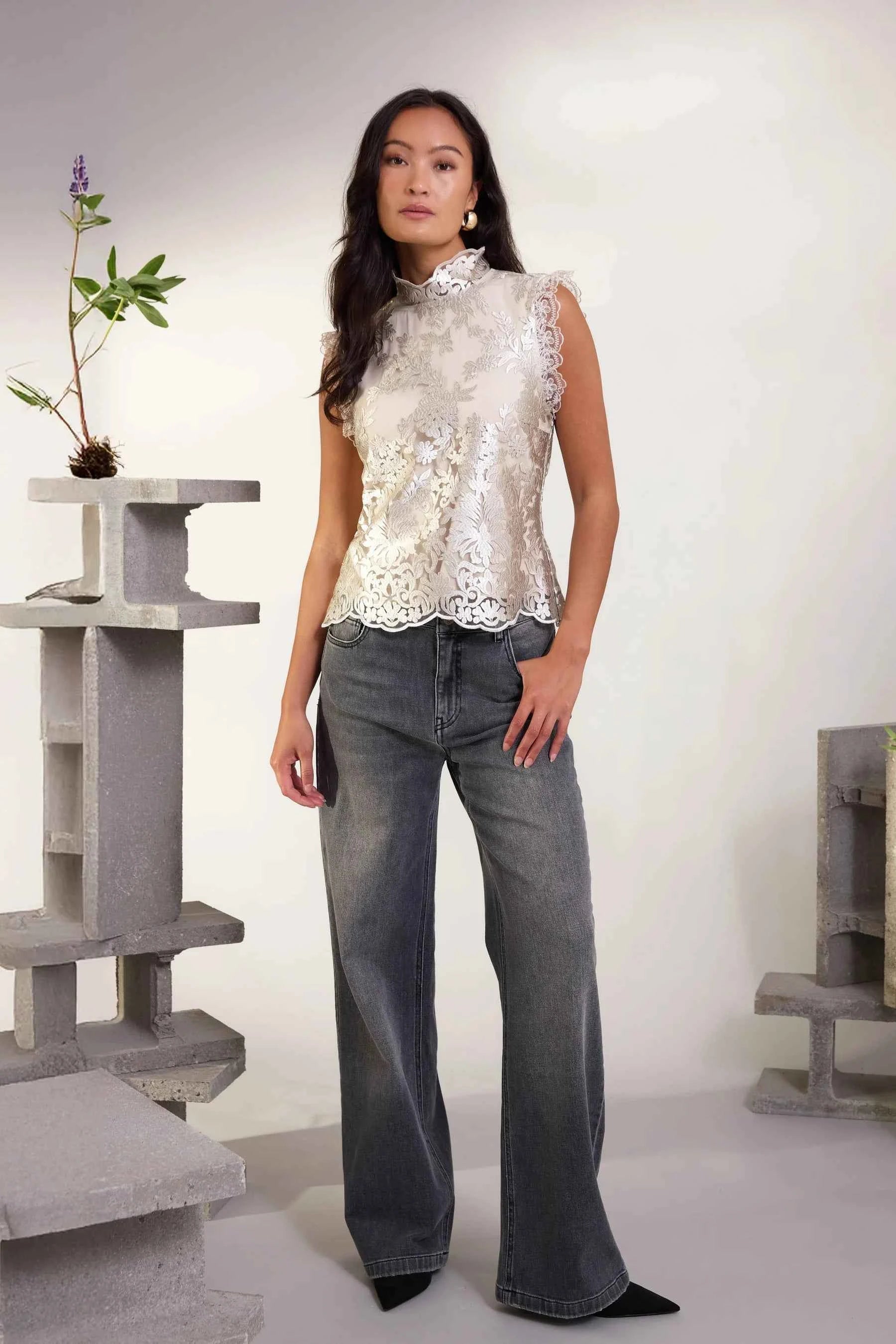 - Washed grey denim