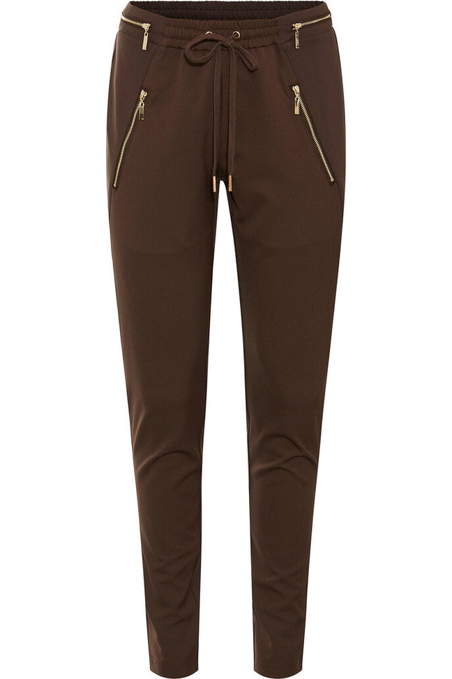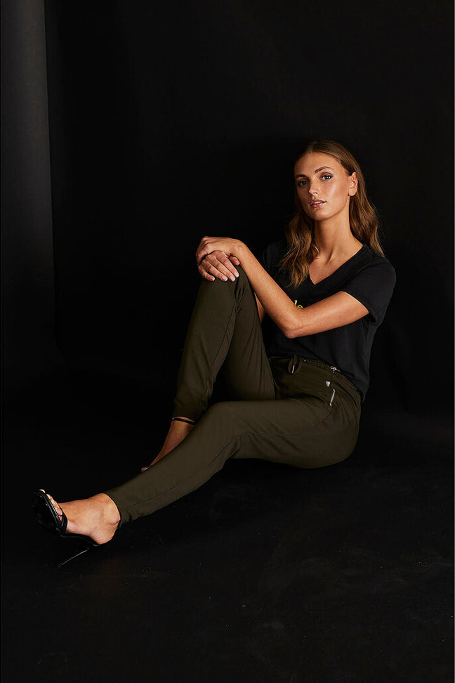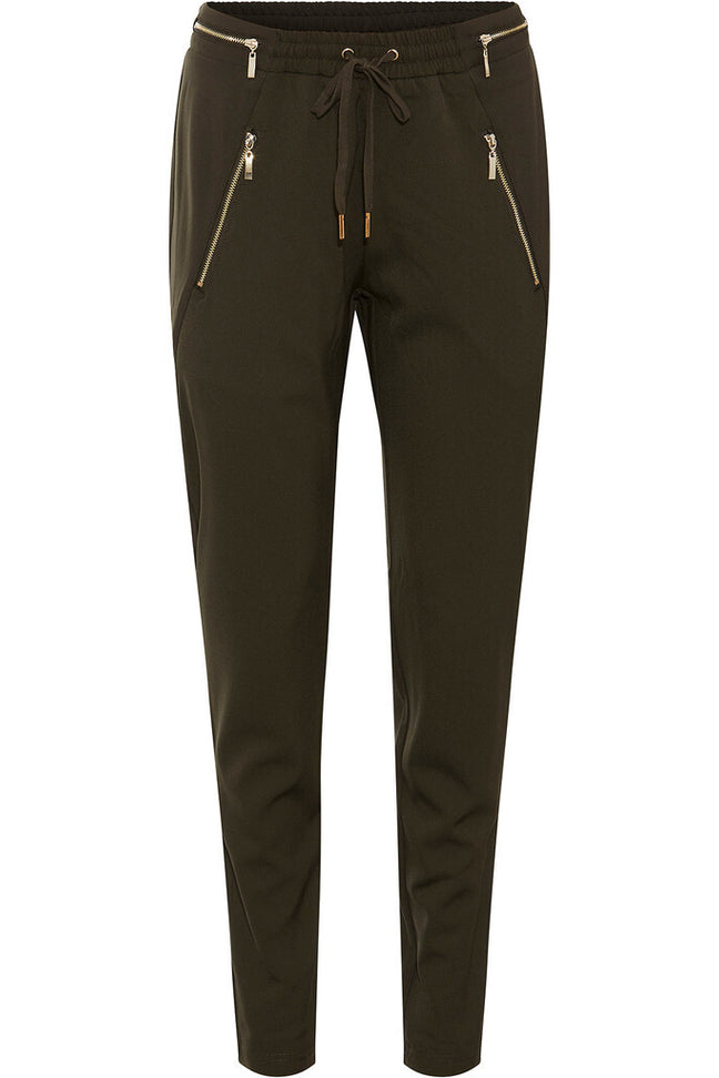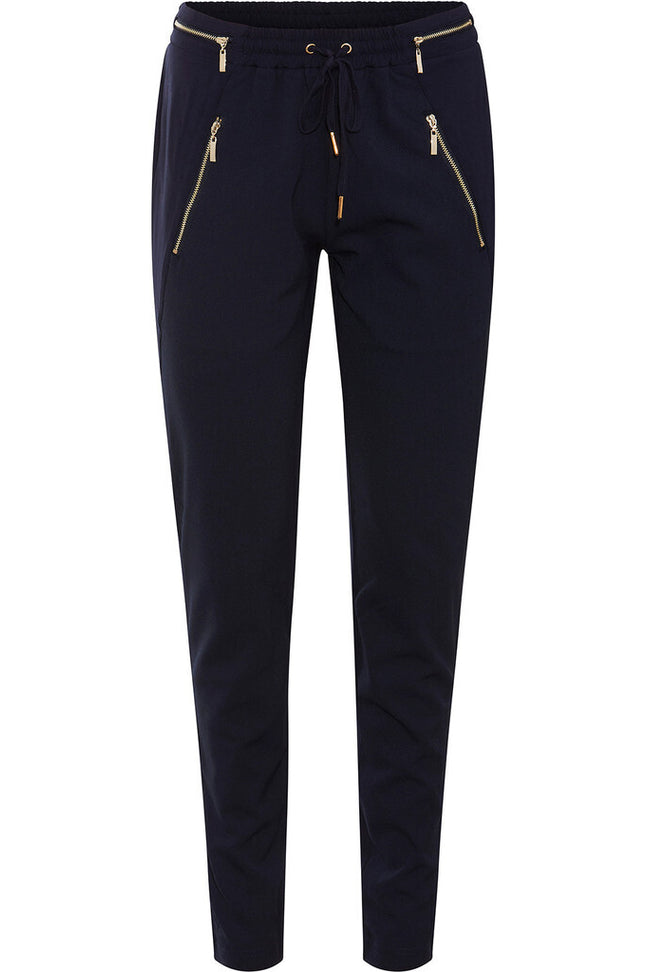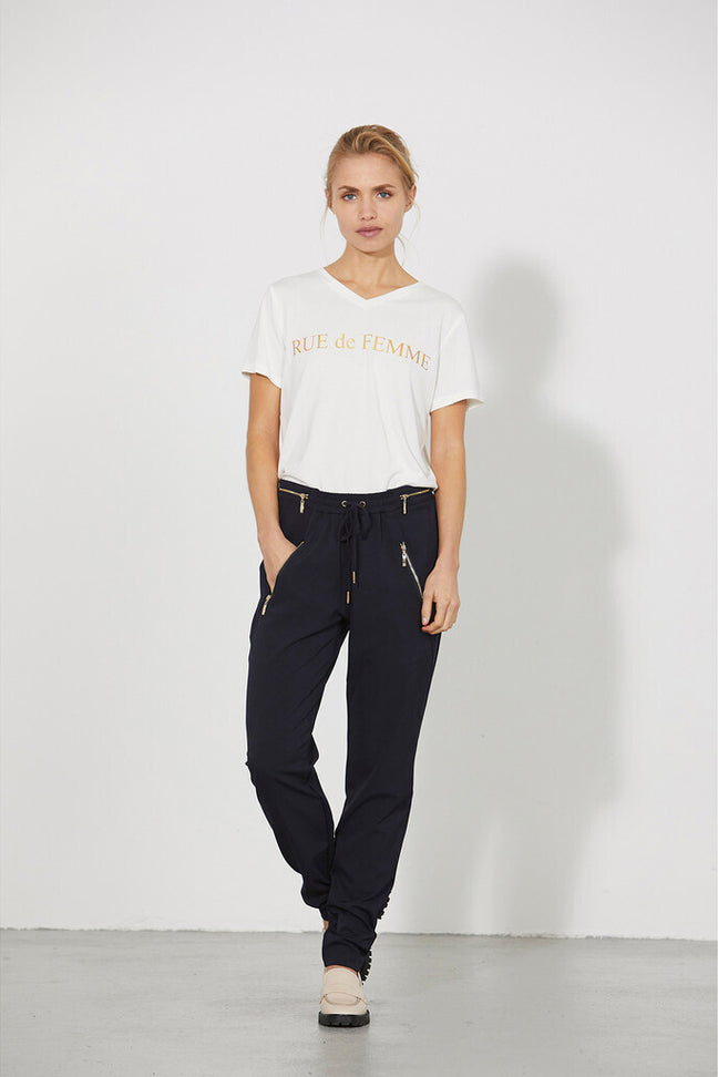 Näissä väljästi istuvissa housuissa on kudottu kangas edessä ja jersey takana. Niissä on vinot vetoketjulliset taskut edessä ja väärennetyt vetoketjut vyötärönauhassa.